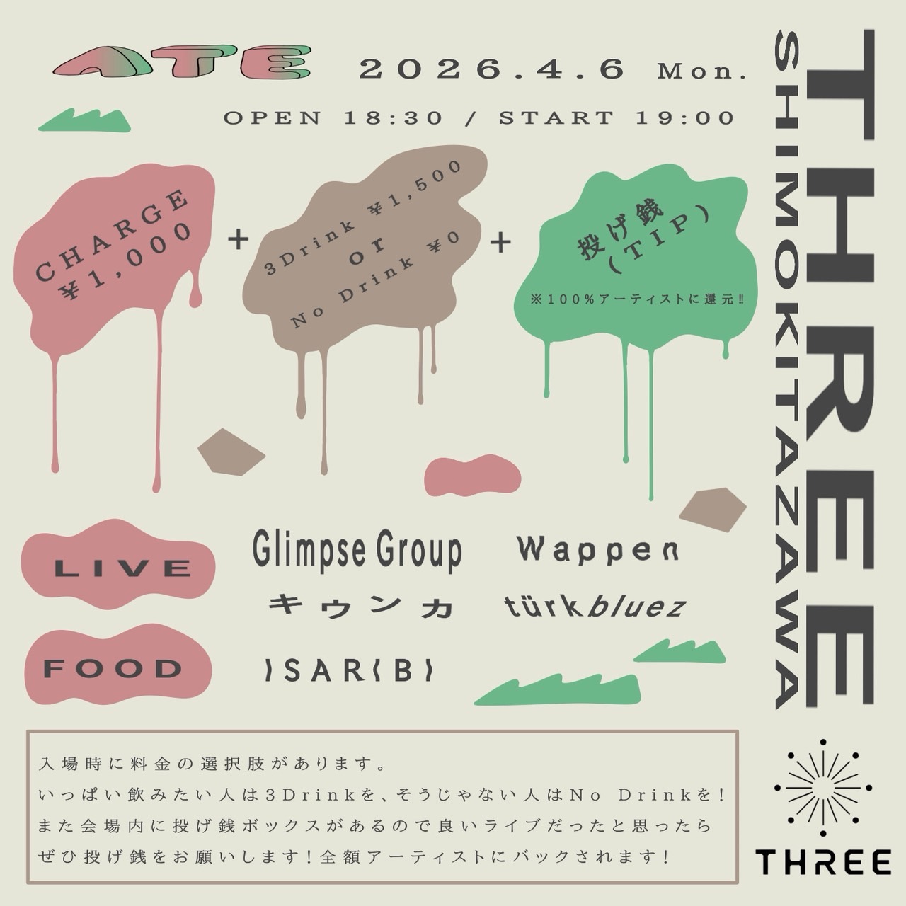 そのトップバッターを飾るのは下北沢THREEの「ATE」。