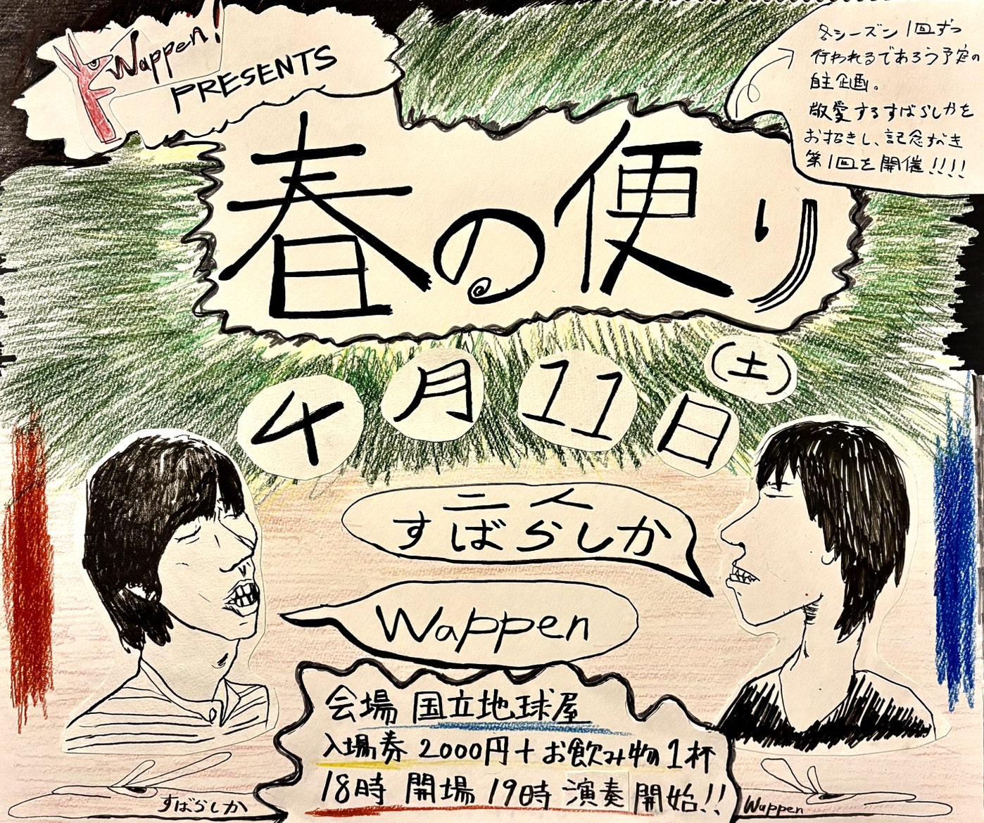 1回目「春の便り」の客人は我々が敬愛するすばらしか(二人編成)をお呼びしている。